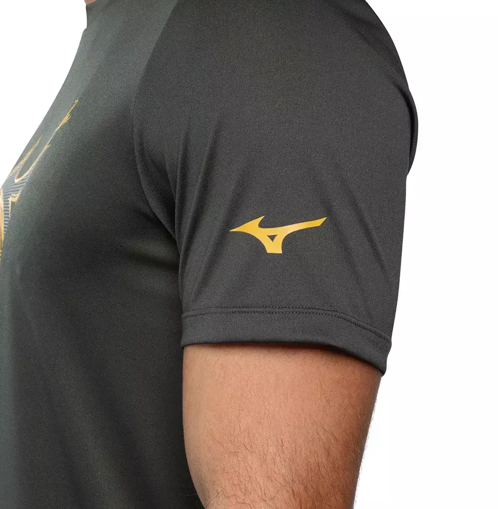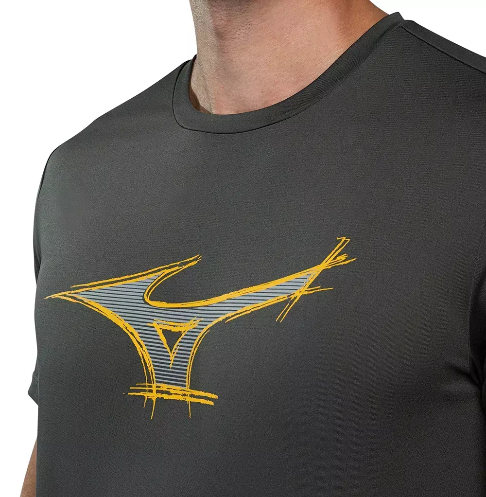 T-shirt em malha leve de poliéster, com mangas curtas e modelagem regular. O diferencial da peça está na estampa exclusiva Mizuno para um look diferenciado para o seu treino.